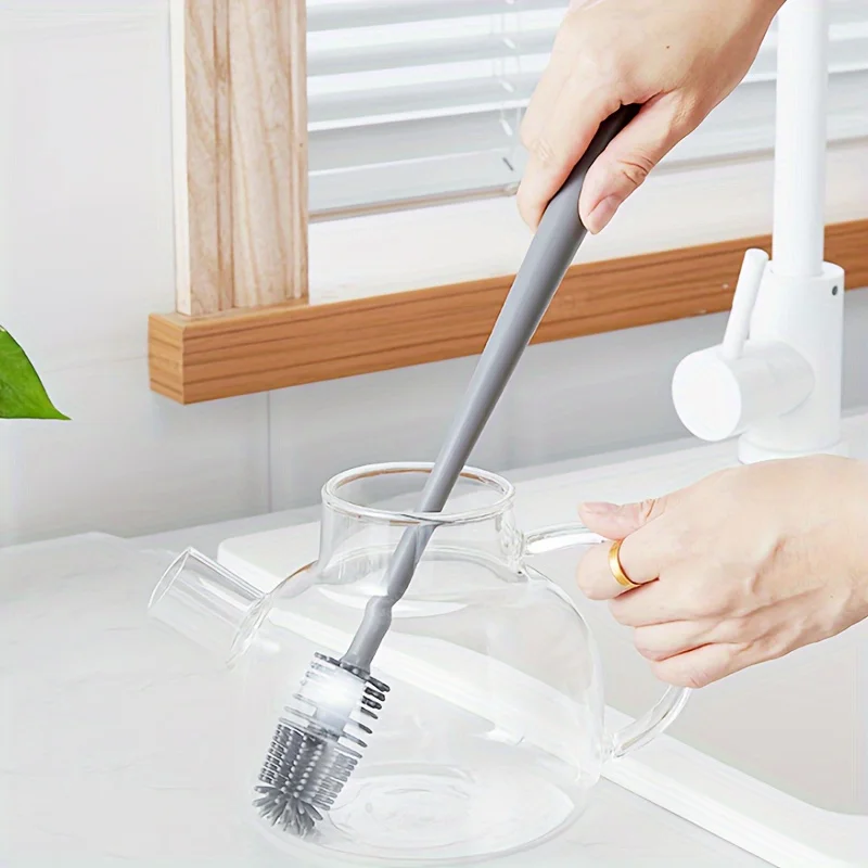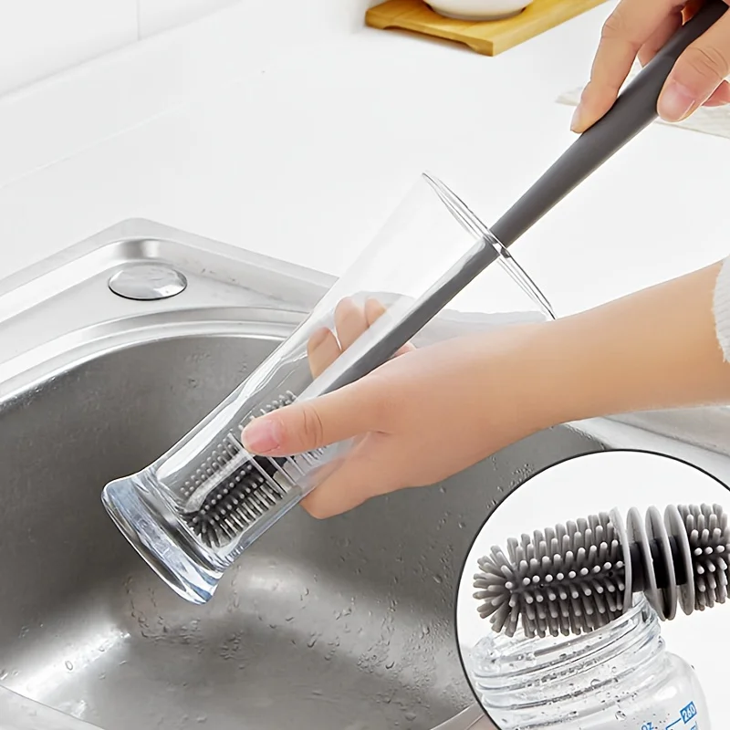Silicone Bottle Cleaning Brush with Long Handle, Flexible No Dead Angle Scrubber for Baby Bottles, Tumblers, Kitchen